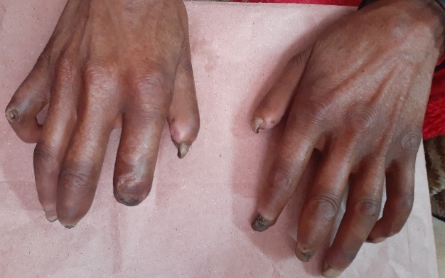 Scleroderma Case history, introduction, types, aetiology, investigations,management, prognosis. By: Dr. Farhat Naz Co author: Dr. Elaf Aslam Hands of scleoderma patient with sclerodactyly, calcinosis and auto-amputation Case Study: 30 years old female known case of Scleroderma since last 9 years presented in emergency with the complaints of chest pain, shortness of breath, dry cough and … Continue reading Management of a patient with Advanced Scleroderma, a rare Autoimmune Disorder
