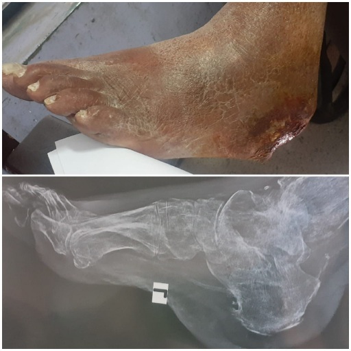 Diabetic foot is any pathology related to feet in a diabetic patient as a consequence of complications of Diabetes.