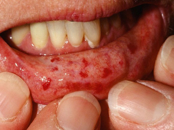 Face: Telangiectasia found on face, nose and oral mucus membranes